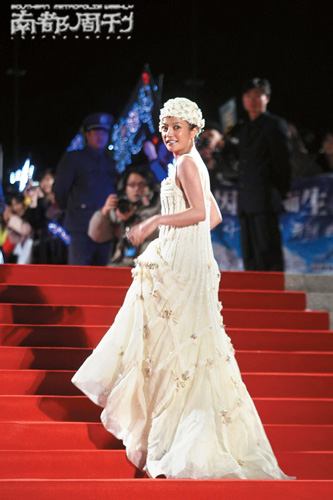 上榜理由:通常情況下,趙薇的穿著表現要比她的星路平常得多,稱她為時裝殺手一點不為過。在這次的風尚典禮上,她表現出了她的時裝判斷力,像低成本制作的電影記錄中的80年代鄉村歌舞團的巨星!先不說曳地長裙對于這個派對是否過于隆重,再說這些裙上的圖案曖昧不清,頭上的帽子仿佛是不負責任的爛電視劇服裝管理給她栽的贓。
