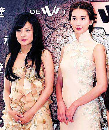 點評:先說下午的發(fā)布會上,趙薇一身粉桃紅及膝中袖裙子,顏色挺好看的,看著很舒服,奈何領子太窄,顯出趙薇肩膀過寬,加之整件衣服寬松沒腰身,說得好聽是“韓國風”,說得不好聽就像孕婦裝;而林志玲可真會吸引人眼光,一件禮服都弄個中西合璧,上身是旗袍式,下身是飄逸的西裙,而背后更有看頭,半透明裝顯露大好身材。