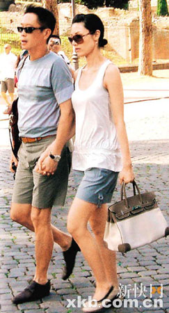 這是許公子比較少有的短打LOOK,不過向來比較正統的他,還是選擇了一雙矮幫的皮鞋來搭配短褲。不過這樣穿也暴露了他有些微凸的小腹——到底是年紀一把了。總體來說,兩個人的搭配感覺都很夏日很度假。
