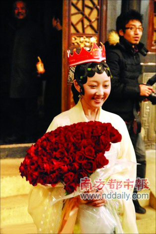 收到這么大一捧玫瑰,蔣夢婕樂壞了。