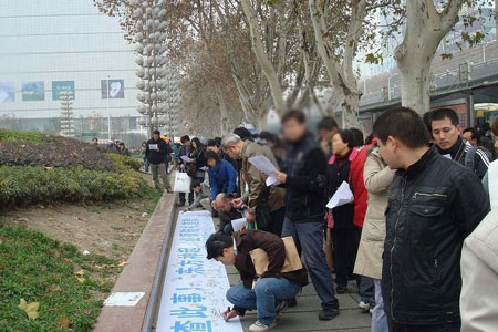 中新網12月26日電 近日,一篇題為《東方神起武漢演唱會前夕遭現場抵制》的帖子熱傳國內各大網站論壇,該帖一出即引發大量網友口水戰。文章說,2008年12月20日,來自武漢三鎮的志愿者在武漢會展中心地區,就“東方神起”針對中國女性的暴力行為發動簽名抗議,志愿者高舉“抗議韓國‘東方神起’演唱組合毆打中國孕婦”條幅,呼吁市民積極參與此次抵制活動。雖然到目前為止,整件“毆打孕婦”事情的真偽性還沒有一個官方的說法,但網友這種自發的行為還是吸引了大量的觀望著,甚至有眾多路人在條幅上簽名表示支持。