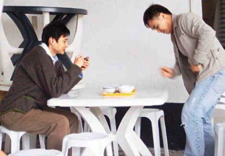 倪震拍下姜汁撞奶的相片,然后發(fā)短信給周慧敏。 (圖片來源:香港《東方日?qǐng)?bào)》)