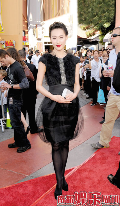經歷了與英皇的合約之戰成功脫身的梁洛施,似乎更成熟了一些,在著裝上體現出她的沉穩,一襲黑色的裙裝和復古的紅唇,往后梳的發型將五官襯托得清新可人。