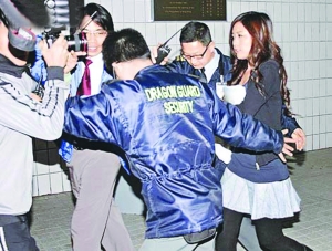 盡管有所準備,被記者圍攻的張茆仍然有些不知所措。保安人員問張茆要到什么地方,她卻呆呆站在一旁沒有回答,任由記者拍照。保安問她要否先到保安室暫避,她立刻回答:“好!”隨后在4名保安的保護下躲到了校內的設施管理中心,避開傳媒的追訪。