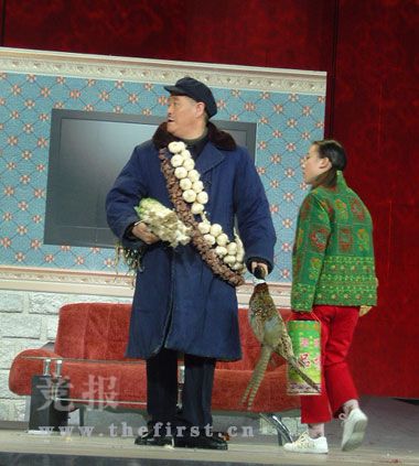 昨日下午,彩排進(jìn)行到3個(gè)多小時(shí),觀眾都看疲憊了,穿著藍(lán)色大棉襖的趙本山扛著一辮大蒜,夾著一捆子大蔥就上臺了。他一露面兒,觀眾的興奮勁兒就來了,掌聲響了起來。按本山往常的臺風(fēng),他這時(shí)都會沖著觀眾席四周掃視一圈,給大家?guī)讉(gè)“憨笑”,但昨天卻突發(fā)意外,本山的咳嗽聲不絕于耳,隨即,觀眾的掌聲戛然而止。趙本山繼續(xù)說臺詞,起先還有觀眾誤以為咳嗽也是趙本山設(shè)計(jì)的包袱,但是大家馬上看出來趙本山是真生病了。