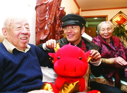 黃曉明的奶奶曾經(jīng)是廠里的領(lǐng)導(dǎo)干部,年事已高,但說起話來底氣很足,舉手投足間還透著領(lǐng)導(dǎo)風(fēng)范。看到記者給她鞠躬拜年,她拉著記者的手說:“我年紀(jì)大了,行動不方便,就不起身迎你了!”據(jù)黃曉明的家人介紹,黃曉明的爺爺、奶奶目前最大的心愿就是希望大孫子能盡快結(jié)婚抱上重孫子,“曉明的同學(xué)很多都當(dāng)上爸爸、媽媽了,他爺爺、奶奶每次看報紙,一發(fā)現(xiàn)孫子和誰誰傳出緋聞,就會對黃曉明的媽媽說,‘這個姑娘多好啊!是不是快結(jié)婚了?怎么也不告訴我一聲!’”黃曉明在一旁補充說:“要不是你先表明了記者的身份,我奶奶沒準(zhǔn)還真能把你當(dāng)成我?guī)Щ貋淼呐笥眩 ?/p>