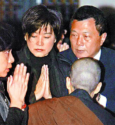 中新網(wǎng)2月5日電 林青霞昨下午返臺吊唁結(jié)緣9年的法鼓山創(chuàng)辦人圣嚴(yán)法師,她笑容凝結(jié)、少了光彩,一身黑衣素服、脂粉未施,露出紅腫雙眼、浮腫眼袋,一下飛機直奔金山總本山大殿瞻仰法相,她雙手合十行跪拜大禮、深磕頭3次,起身時步履蹣跚,彷佛失了魂,哀戚神色令人不舍。她短暫來臺5小時,參拜完師父法相后旋即返港,預(yù)計下月返臺。