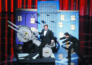 杰克曼在節(jié)目中場(chǎng)不忘一展曾是百老匯歌劇演員的基本功。只見(jiàn)他戴著高帽身穿燕尾服,和樂(lè)壇天后碧昂絲一起表演熱門音樂(lè)電影《歌舞青春》與《媽媽咪呀》,舞畢全場(chǎng)起立鼓掌,對(duì)他的精湛演出給予最高肯定。