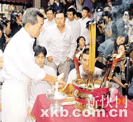 梁朝偉:不但被白龍王收做干兒子,據說每晚還必定夜拜白龍王,在睡覺前,會到廚房拿一個特殊的水杯,將里面的水倒進飯桌上的一個碗當中,據說是防止偏桃花。
