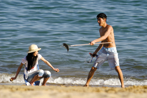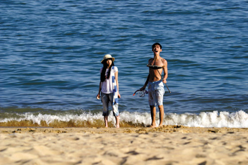 《流星雨》最新劇照的內(nèi)容包括了眾人集體野炊、慕容云海為楚雨蕁潛海捕魚(yú)、端木磊在沙灘上與楚雨蕁對(duì)白,以及眾人一起打沙灘排球等多個(gè)場(chǎng)面,但效果卻被網(wǎng)友歸結(jié)為一個(gè)字———“土”。相比之下,韓劇《花樣男子》中李民浩赤裸上身在海灘飛奔的情景,卻讓網(wǎng)友普遍認(rèn)為,他蓬松的卷發(fā)在湛藍(lán)的海水前飛舞的樣子極為性感。據(jù)《花樣男子》劇組工作人員透露,該場(chǎng)景中包括了男女主角的首場(chǎng)感情戲,是劇情中的關(guān)鍵部分,所以劇組專門前往海外進(jìn)行拍攝。除此之外,澳門的威尼斯人(度假村)酒店也是該劇外景地之一。