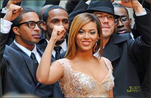 27歲的性感天后碧昂斯3月8日在紐約街頭身穿閃亮低胸性感禮服亮相,為自己的世界巡回演唱會拍攝特別版MTV,從照片中我們可以看出碧昂斯身后跟著無數西裝革履的男士們,我們很期待看到這個MV的精彩內容,下面我們先看看照片吧。