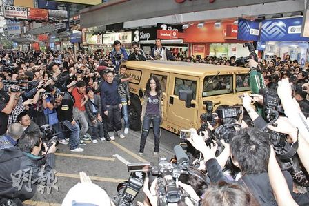 據香港《明報》報道,阿嬌昨日以Bauhaus旗下的TOUGH Jeansmith亞太區代言人身分,現身旺角西洋菜街做宣傳。這次是阿嬌自艷照事件后首次面對群眾,大會聘請10多位保安維持秩序,警方亦加強軍裝警察協助,便衣探員亦在高處攝錄戒備,活動中除有半百fans帶齊橫額和敲銅鑼支持,亦吸引過千市民圍觀,場面熱鬧。