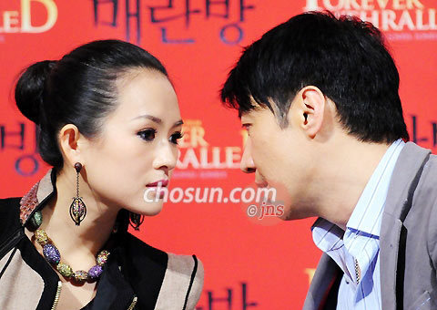 中新網(wǎng)3月25日電 據(jù)朝鮮日?qǐng)?bào)報(bào)道,電影《梅蘭芳》韓國(guó)試映會(huì)和記者會(huì)24日下午在首爾往十里CGV影院舉行,該片主演黎明、章子怡和導(dǎo)演陳凱歌也出席了當(dāng)天的活動(dòng)。中國(guó)頂級(jí)明星黎明和章子怡為《梅蘭芳》宣傳造勢(shì),于23日下午飛抵了仁川國(guó)際機(jī)場(chǎng)。