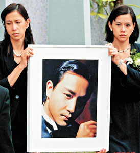 35,2003年4月1日下午4時30分,哥哥獨自到中環文華酒店的24樓會所,點了飲品及香煙獨坐。及后步出露臺,寫下遺書后,于傍晚6時41分一躍而下,結束璀璨一生。