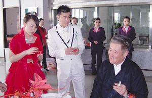 婚禮最重頭的交換戒指、互相承諾環節,被丫蛋與王金龍語無倫次的真情告白推至高潮。從婚禮開始就一直掉眼淚的丫蛋,幾乎無法說出完整的句子,對老公的承諾和叮囑更是高興到泣不成聲:“老公,我的性格我的脾氣你非常了解,我平時不是很會說甜言蜜語的人,我從小并沒有出生在一個很幸福的家庭……當我愛上你的時刻,當咱倆牽手的時刻,我感覺到什么是愛情的滋味,答應我,咱倆慢慢地走到老,好不好……拉勾?一百年不許變……”新郎王金龍也數度哽咽,說出的承諾和愛的宣言,樸實卻讓人動容:“今后我是咱家的爺們兒了,我得照顧好你,我知道你有很多的委屈,但是現在俺倆是一家人,我希望你跟我說,我希望我愛的人跟我在一起能夠幸福,能夠開心,媳婦兒,我愛你!