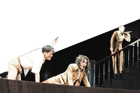 相比之下,在表現(xiàn)四個(gè)嫌疑人之間勾心斗角的某些橋段中,舞蹈就比打斗來(lái)得詼諧許多。有一段,其余三人一邊扭著好玩的倫巴,一邊卻在拼命詆毀吳志國(guó):“吳部長(zhǎng)干嘛去了?人家是部長(zhǎng),官高一級(jí)壓死人嘛!”記者 陳宇浩