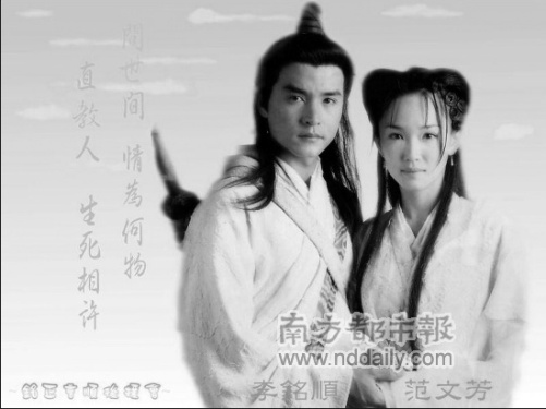 故事:師徒之間的不倫之戀,最終楊過和小龍女雙雙浪跡天涯。