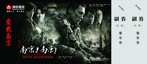 據了解,該電影主題地鐵紀念票由南京地鐵運營分公司日前與中影集團合作發行,正面采用《南京!南京!》電影的主題海報,并有兩聯副券用于乘坐地鐵。此次南京地鐵運營分公司與中影集團通過資源置換的方式進行的聯合,開創了南京地鐵運營分公司票卡發行的新模式。