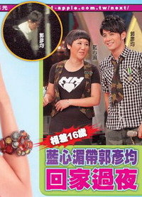 據(jù)悉,郭彥均和藍心湄私交不錯,數(shù)月來也常上《女人我最大》節(jié)目,成為頗具知名度的通告藝人,下了節(jié)目兩人也常在一起,不是去吃飯就是去喝酒,而活動結束后,郭彥均就單獨回到藍心湄家,過著只有兩人的夜晚,藍郭過從甚密的說法因此傳開。