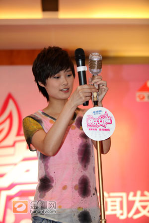 今日上午10點半,“2009快樂女聲”在北京舉行了發布會。05屆超女冠軍、擁有超高人氣的李宇春到場助陣,并成為了本次快女的形象代言人。現場她更是送上天價“金麥”為09快女加油。
