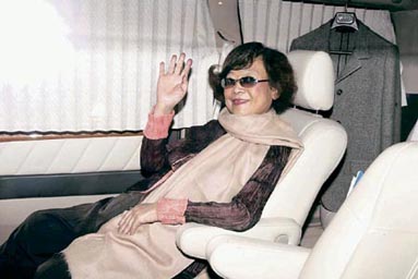 中新網10月19日電 “肥姐”沈殿霞前日出院返家休養,愛熱鬧的她昨午出動與好友聚會,為免被傳媒追訪,她改乘陳淑芬的座駕,并拉上窗簾掩人耳目,直至晚上8時才回家,心情不錯的她拉開窗簾讓記者拍照。化了妝的肥姐精神甚佳,還笑著向鏡頭揮手。