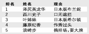 日本一家網站請網友票選“最討人厭女星”排行,澤尻英龍華不負眾望,擊敗藤原紀香、濱崎步等人封后。