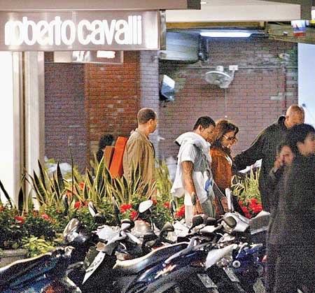 碧昂絲(右)昨晚在保鑣簇擁下,到飯店附近的精品店掃貨。