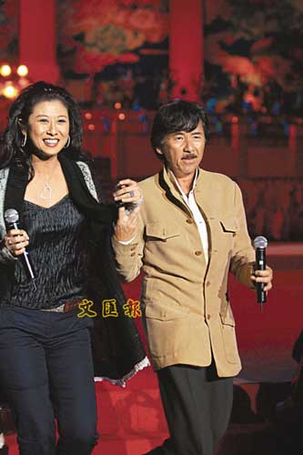 中新網11月19日電 香港文匯報報道,譚詠麟、林子祥、葉倩文葉倩文及陳曉東四位歌手,昨日到機場香港亞洲國際博覽會出席“慶祝回歸十周年萬眾供佛齋天祈福勝會暨大型梵樂演唱會”,演唱會上林子祥(Lam)與葉倩文(Sally)夫妻檔合唱了一曲《友愛長存》,之前阿Lam與Sally多次傳出婚變消息,但昨日所見二人在臺上手拖手合唱,下臺時Sally又細心扶著丈夫,表現得十分恩愛,馬上以行動粉碎謠言。