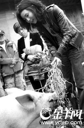 日前,張曼玉到云南省會澤縣參加“童夢圓”活動,在農戶家喂過一頭豬。后來有網友惡搞說當地縣委書記最近發出指示說,要切實保護張曼玉喂過的豬,在網上掀起劇烈評論。對此,會澤縣有關部門稱,網上傳言純粹是胡編亂造,而張曼玉喂過的豬將在年底被宰。