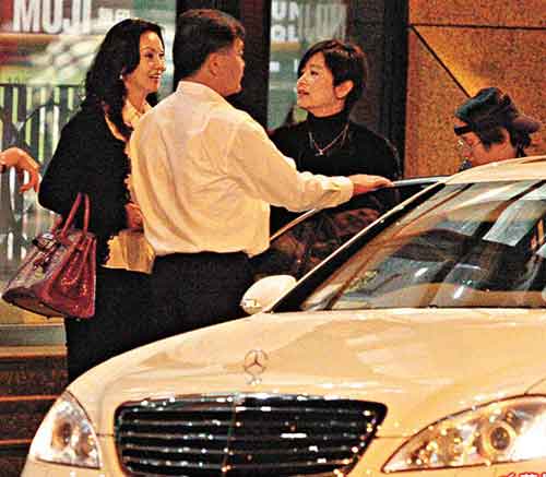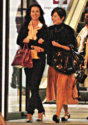 林青霞(右)與女伴挽手離開時顯得春風滿面。