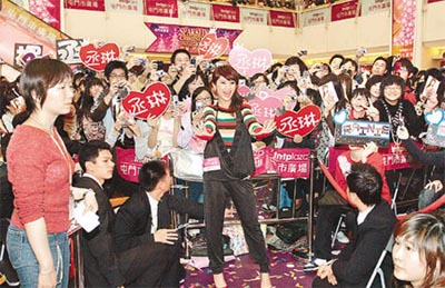 中新網12月26日電 楊丞琳前晚(12月24日)在香港屯門市廣場舉行倒數派對,逾千Fans長途跋涉捧場,她不但為小妹妹撓頭,還拉小男孩跳舞,大打親民牌!期間,因合作拍攝《惡魔在身邊》及《換換愛》而傳緋聞的賀軍翔(小美)成為取笑目標,當楊丞琳表示愛穩重及帥氣的男生時,全場Fans大叫“小美愛你”,其后她表示要買戒指,Fans再度大叫小美的名字,令她十分尷尬:“為什么?戒指是我自己買的,干嘛叫他?”