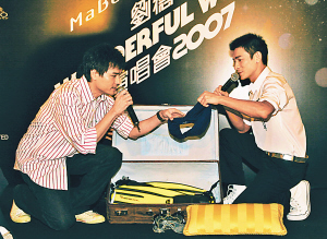一連16場于紅館舉行的“劉德華Wonderful World演唱會2007”于上周六晚圓滿結(jié)束,情緒高漲的劉德華足足安哥了半小時,直至次日凌晨才完場,超時罰款6位數(shù)字全不理會。期間劉德華收到大量鮮花和香檳,他立即開了幾支香檳射向觀眾,又開心得以香檳淋頭。安哥時當劉德華唱到《沒有翅膀的天使》時,歌迷起哄要求他除衫,劉德華就幽默地說:“我拍的是《投名狀》,不是拍《色,戒》。”