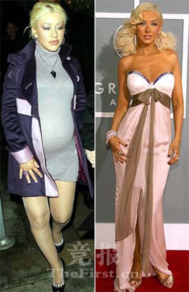 流行歌手克里斯蒂娜挺大肚腳蹬高跟鞋出門(圖)