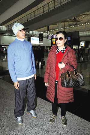 圖文:羅家英機(jī)場(chǎng)接汪明荃澳洲返港佯裝巧遇