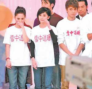 在前晚的無(wú)線直播特別節(jié)目《雪中送暖》中,阿嬌也受邀參加,除與“校長(zhǎng)”譚詠麟等人合唱賑災(zāi)主題曲《雪中送暖》外,阿嬌和阿SA還獲得了單獨(dú)表演的機(jī)會(huì)。