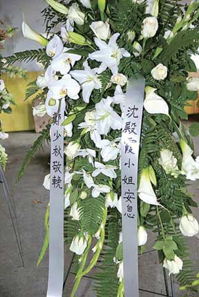 中新網(wǎng)2月28日電 肥姐生前愛白色鮮花,欣宜與前夫鄭少秋送給肥姐的花籃、花束也是白色為主, 配合喪禮的莊嚴(yán)氣氛。肥姐舉行喪禮前夕,送到本那比墓園的花圈已有數(shù)百個(gè),布滿現(xiàn)場(chǎng)成花海似的。