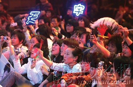 昨日中午,在文化路上的一家音像社里,馬天宇和他的“羽毛”們進行了親密接觸!拔覜]覺得自己人氣很高啊!闭勂稹坝鹈,馬天宇雖然嘴上謙虛,卻笑得很開心。