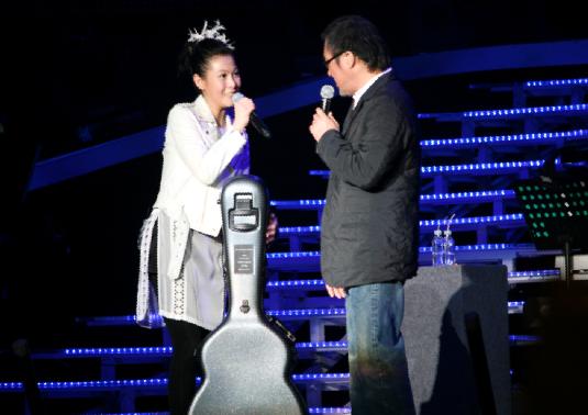 終于,這番朝思暮盼總算在成都演唱會上有了美麗結局。當奶茶在臺上一眼看到李宗盛優雅的拖著吉他箱上臺助陣時,驚喜得說不出話。大哥逗趣笑說:“奶茶之前放過話,說我如果不給她吉他,接著每一場演出我都得來當她的嘉賓。所以呢,我今天可不可以先給妳吉他箱子,等下一場時再給妳吉他,因為我實在太想到妳的場子上唱歌了!”