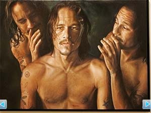 據臺灣“東森新聞”報道,筆觸細膩的人像畫,畫中的男主角正是英年早逝的好萊塢男星希斯·萊杰,這是墨爾本藝術家范陶索今年一月完成的畫像,他與希斯萊杰是超過五年的好朋友,也因此深刻的筆觸更讓這幅畫與眾不同。文森范陶索說:“今年初萊杰覺得夠自在了,所以他打給我,問我愿不愿意畫他。”