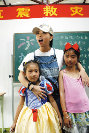 前天(31日)下午,張惠妹帶上許多玩具以及文具,趕到成都青羊區(qū)地震災(zāi)區(qū)群眾安置點(diǎn),看望當(dāng)?shù)氐暮⒆觽儭R粋(gè)16歲小帥哥的精彩演唱讓阿妹驚得發(fā)呆,當(dāng)場(chǎng)表示想收他當(dāng)徒弟。
