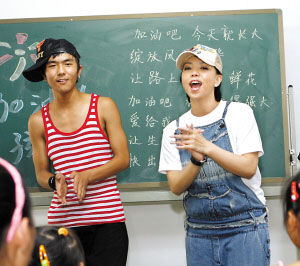 李文害羞地告訴張惠妹,他今年16歲,在都江堰上學(xué)的時(shí)候就跟著老師學(xué)唱歌,去年還參加了一個(gè)新人比賽拿了全國(guó)第二,當(dāng)時(shí)的評(píng)委老師當(dāng)場(chǎng)就收他為徒。“可惜發(fā)生了地震,我不能再學(xué)唱歌,現(xiàn)在我喜歡和四川音樂(lè)學(xué)院的志愿者老師們?cè)谝黄,他們可以教我唱歌。”?tīng)到李文這么說(shuō),張惠妹當(dāng)下就表示:“這樣吧,我回臺(tái)灣后會(huì)跟公司商量一下,我打算收你為徒弟!”