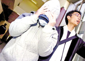 郭鎮瑋為躲避鏡頭穿得相當嚴實。