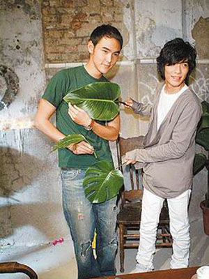 中新網6月19日電 因偶像劇《命中注定我愛你》暴紅的臺灣男演員阮經天,為回報蕭敬騰曾在該劇中客串演出,前天特意留出6小時空檔,幫蕭敬騰拍新歌《奮不顧身》MV,蕭敬騰知道他將履行收視率破10要裸泳的承諾,特地探班并送2片植物,還揶揄他:“看你要遮臉還是遮下面!”阮經天則笑答:“那要再送我1片!”