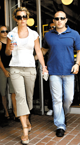 隨后,布蘭妮前往Fred Segal百貨商店掃貨排解不好情緒,當天,她身著白色短袖衫和帶口袋的褲裝,沒有任何表情。