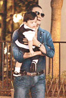 一向視孫兒為心肝寶貝的四哥,期間獨自抱孫下樓往附近逛公園,下月2日便足一歲的Lucas,樣子愈大愈像父母及爺爺,頭發長得非常濃密,全程在爺爺懷中更精乖沒有鬧別扭,當四哥與他說話時,雖不懂回應亦笑著望爺爺,逗得四哥很開心。四哥抱住Lucas四周逛,見人就狂贊乖孫很可愛。