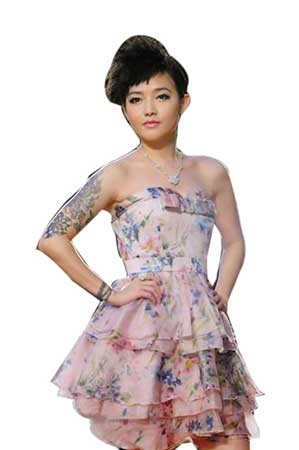 ★梁靜茹:全身鑲滿(mǎn)鱗片的鮮紅色禮服,視覺(jué)效果很膨脹,配上她圓滾滾的身材和大大的眼睛,活脫一條美麗的金魚(yú)。