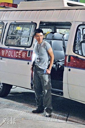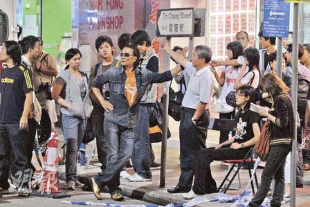 據香港《明報》報道,電影《證人》前晚拍攝槍戰戲后,飾演警察的霆鋒受傷,他坐在警車上接受救護人員處理傷口,右手包扎紗布,額頭亦有貼上膠布。期間,身穿牛仔恤衫的四哥現身探班,他的有型打扮吸引大家視線,見他一手撐著路牌擺pose,一邊喝汽水一邊吸煙,當他發現記者拍照時即笑說:“開槍打死你喲!”