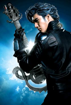 中新網(wǎng)7月18日電 最近,王力宏為9月份演唱會(huì)進(jìn)棚拍攝宣傳海報(bào),將自己改造為“MUSIC MAN”音樂(lè)超人。據(jù)臺(tái)灣《中國(guó)時(shí)報(bào)》報(bào)道,王力宏穿上漆黑的皮衣搭配銀色護(hù)甲,再將頭發(fā)挑染成金屬色澤的藍(lán)發(fā)色,手拿“音符龍”圖騰的電吉他,充滿漫畫(huà)元素及未來(lái)科技感,氣勢(shì)十足。