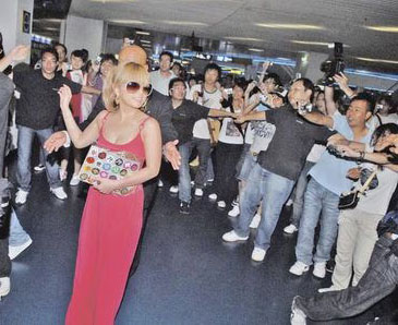 中新網(wǎng)7月25日電 日本巨星濱崎步本周二(22日)到澳門拍攝2008年月歷,匆匆逗留28小時(shí)之后,前日晚上7時(shí)許返港。換上橙紅色吊帶裙,戴上太陽眼鏡的濱崎步,獲30余名粉色送機(jī),場(chǎng)面火爆。