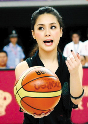 前晚7時,阿嬌出現在籃球場館。她一身黑色背心上衣,配以牛仔短褲和長靴,束起頭發,顯得精神奕奕。可能是休息了大半年養尊處優,阿嬌明顯發胖了,清瘦的臉變得圓嘟嘟。許久沒有出現在鏡頭前的阿嬌一開始顯得有點緊張,不過招牌式甜美笑容掩蓋了“怯場”。